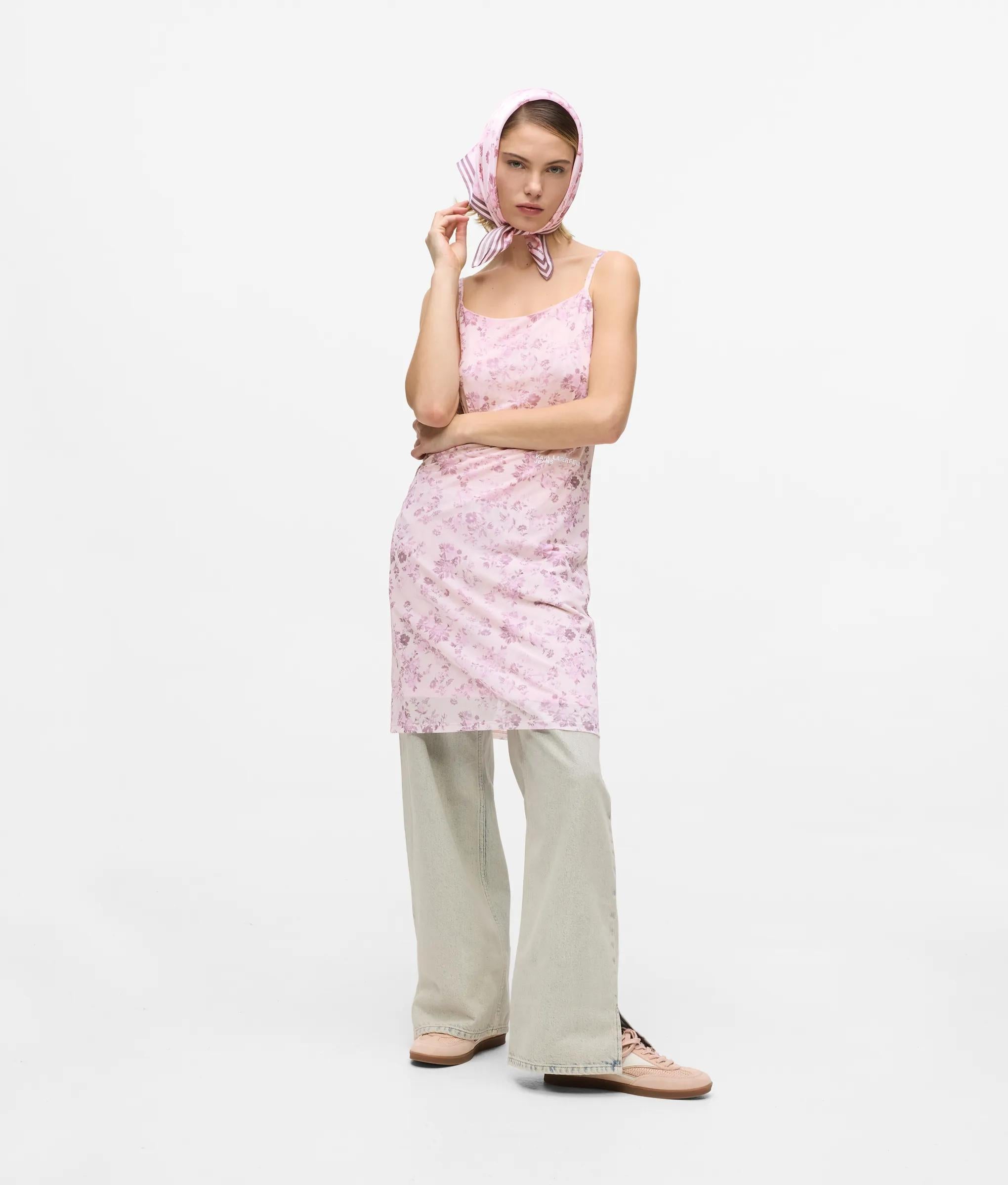 Licht, gemakkelijk en gemaakt voor zelfexpressie. Deze gebloemde mesh slip Jurk heeft een minilengte en een minimalistisch silhouet, waardoor u de vrijheid heeft om het op uw manier te stylen. Draag het met sneakers en een oversized spijkerjas voor het gemak van overdag, en schakel dan over naar grove laarzen en opvallende sieraden als het donker is.