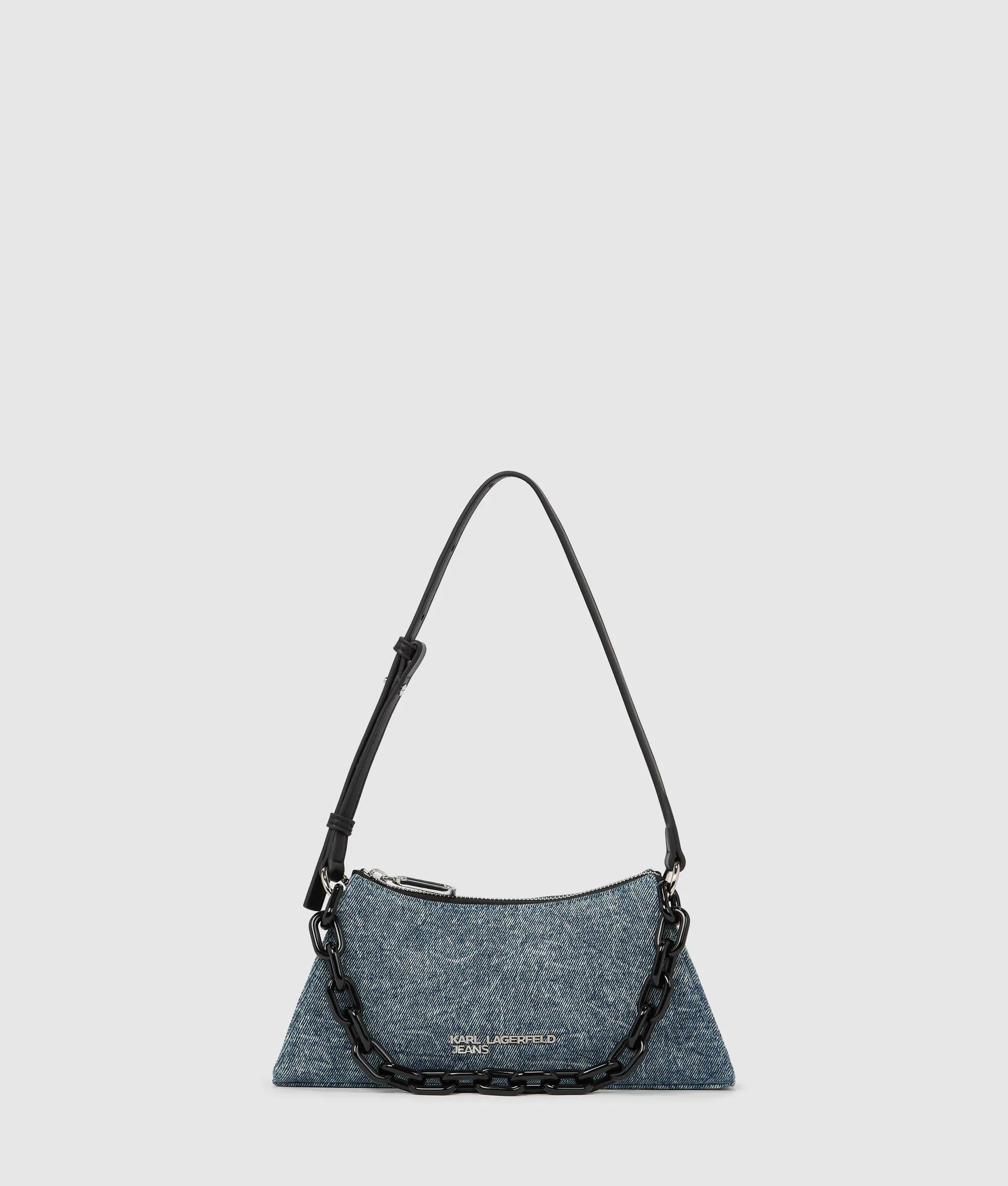 De geest van rebellie, deze opvallend geometrische schoudertas is gemaakt van urban gewassen denim met edgy kettingdetails. Met een stevig ritssluiting en verankerd door KARL LAGERFELD JEANS hardware.