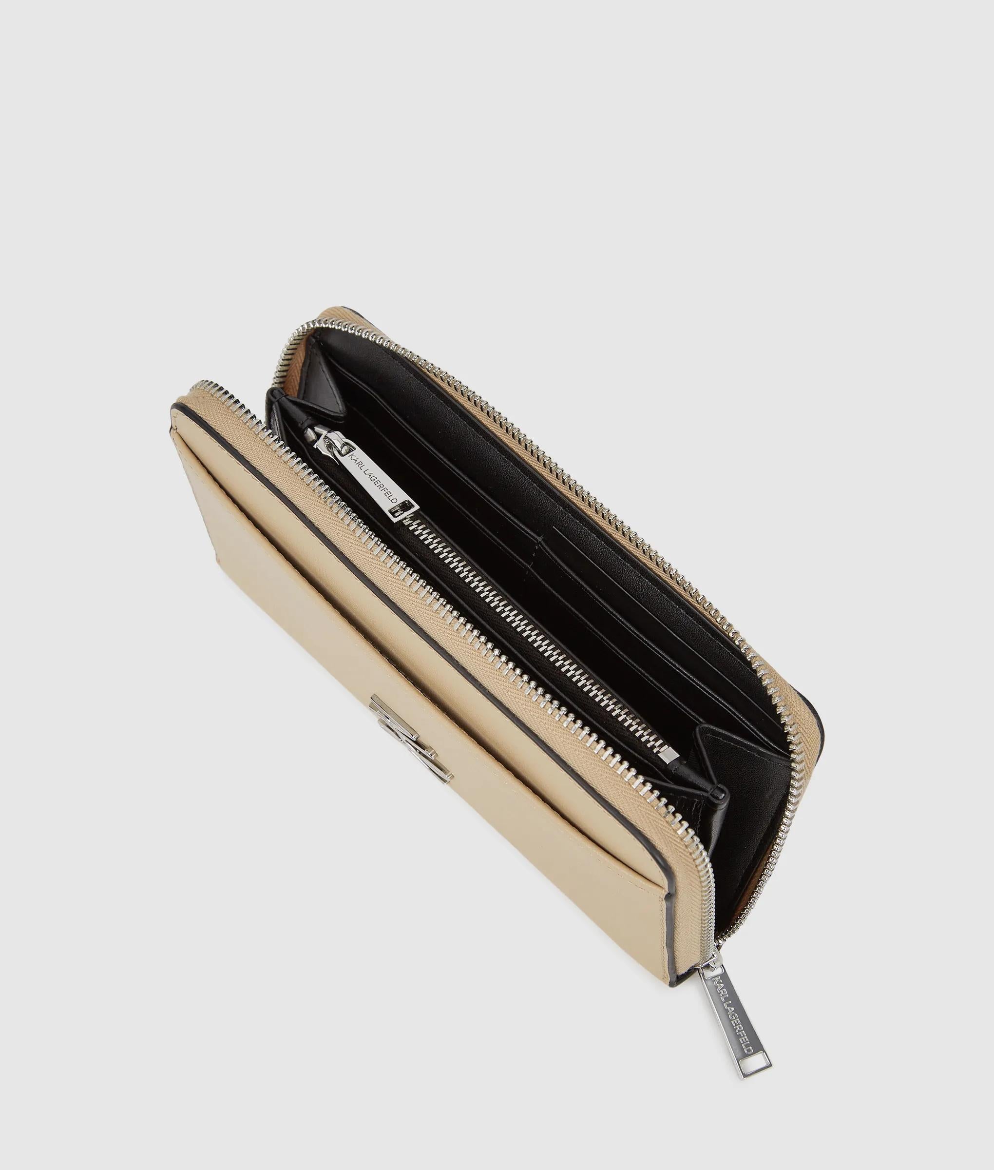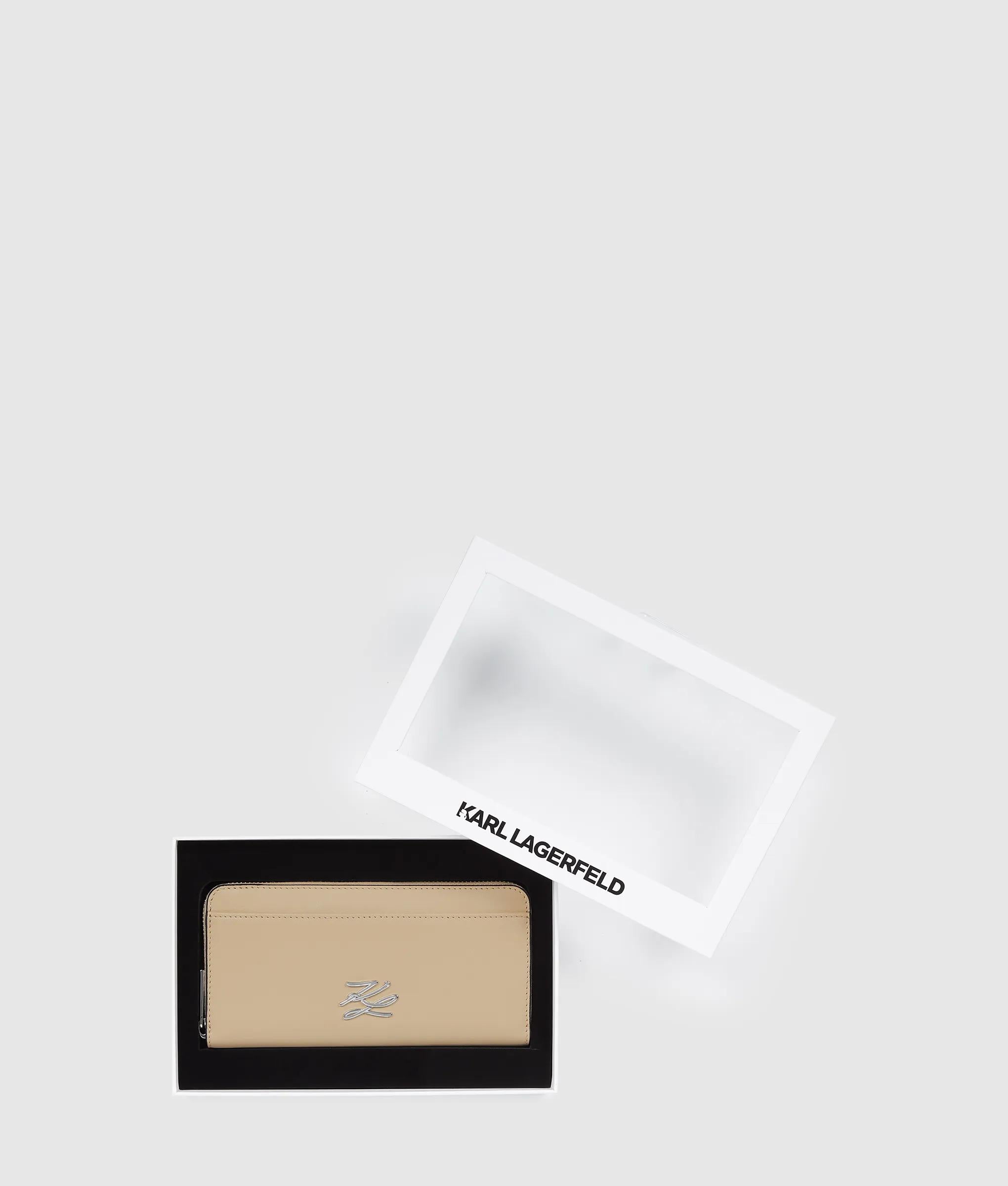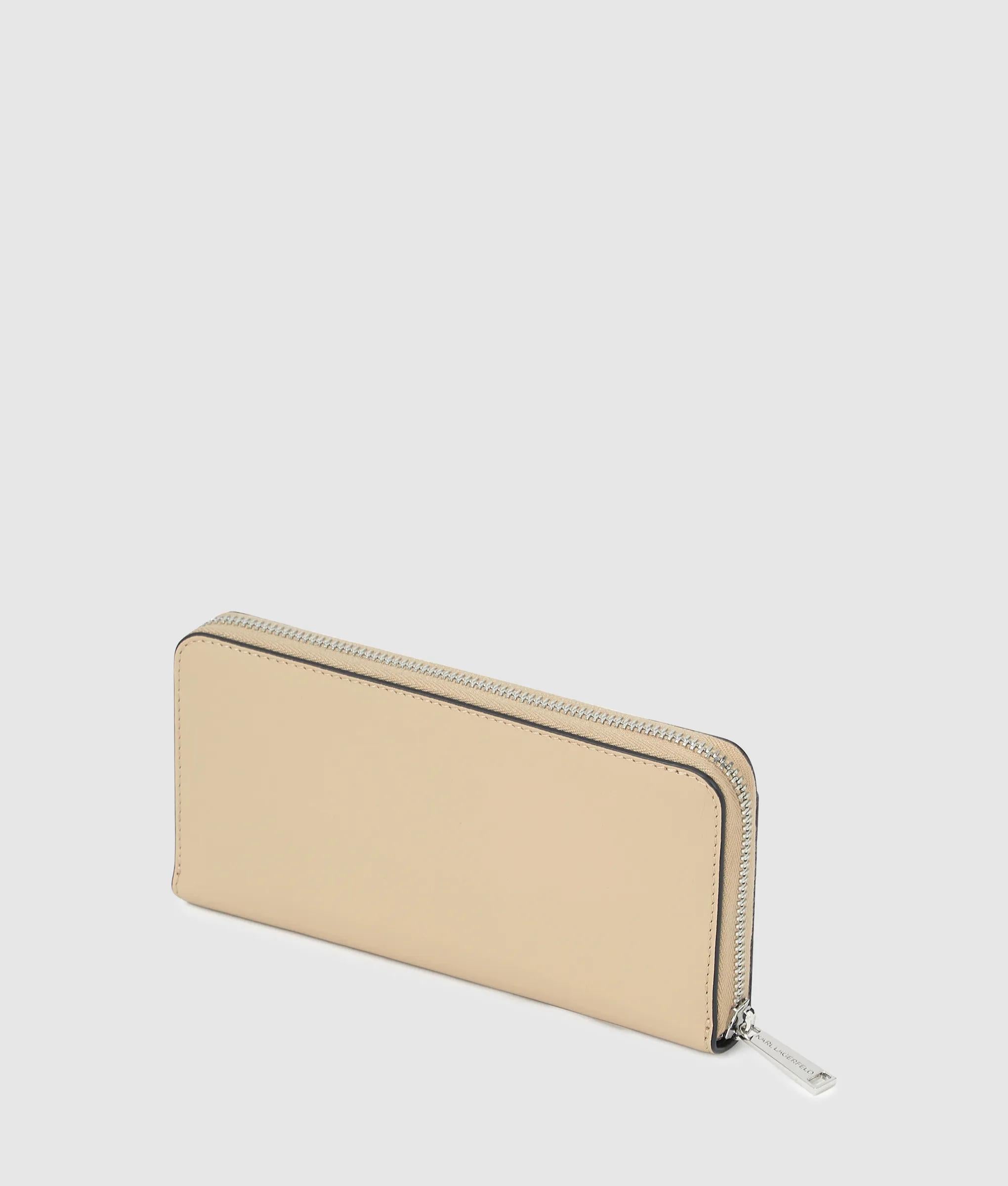 Een gestroomlijnde continentale portemonnee met een verfijnd silhouet met ritssluiting. Gemaakt van soepel leer, biedt het georganiseerde elegantie met gepolijste logodetails-perfect voor cadeaus momenten.