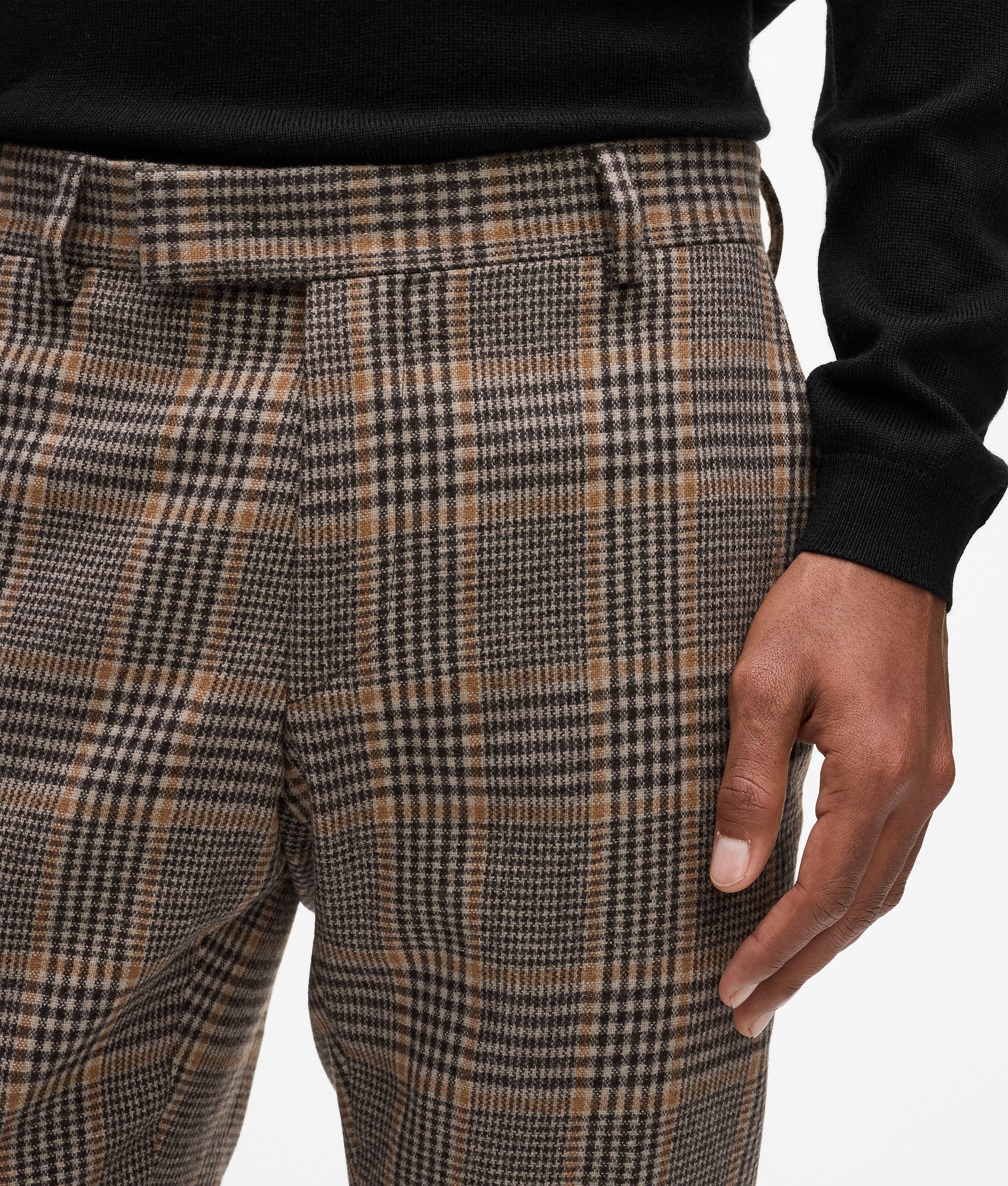 Deze broek heeft een verfijnde pasvorm en creëert een strak silhouet dat precisie uitstraalt. Het geruite ontwerp heeft een klassieke stijl, terwijl de steekzakken en de blinde gulpsluiting zorgen voor een vlekkeloze afwerking.