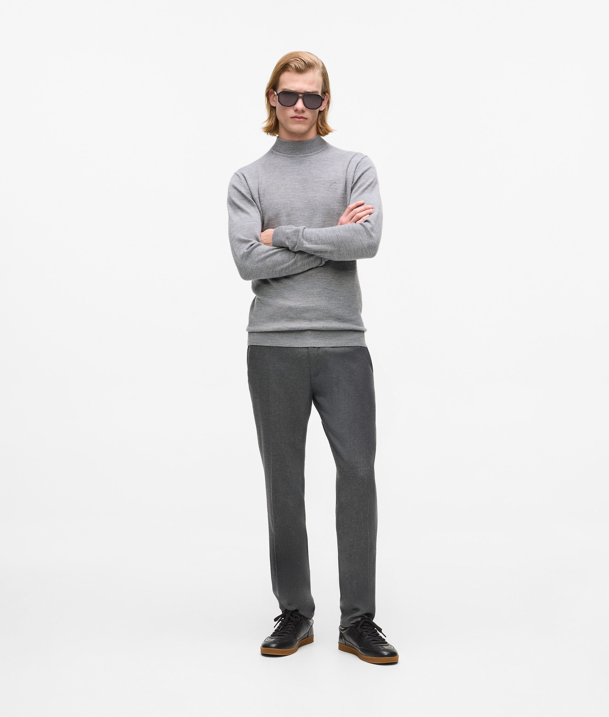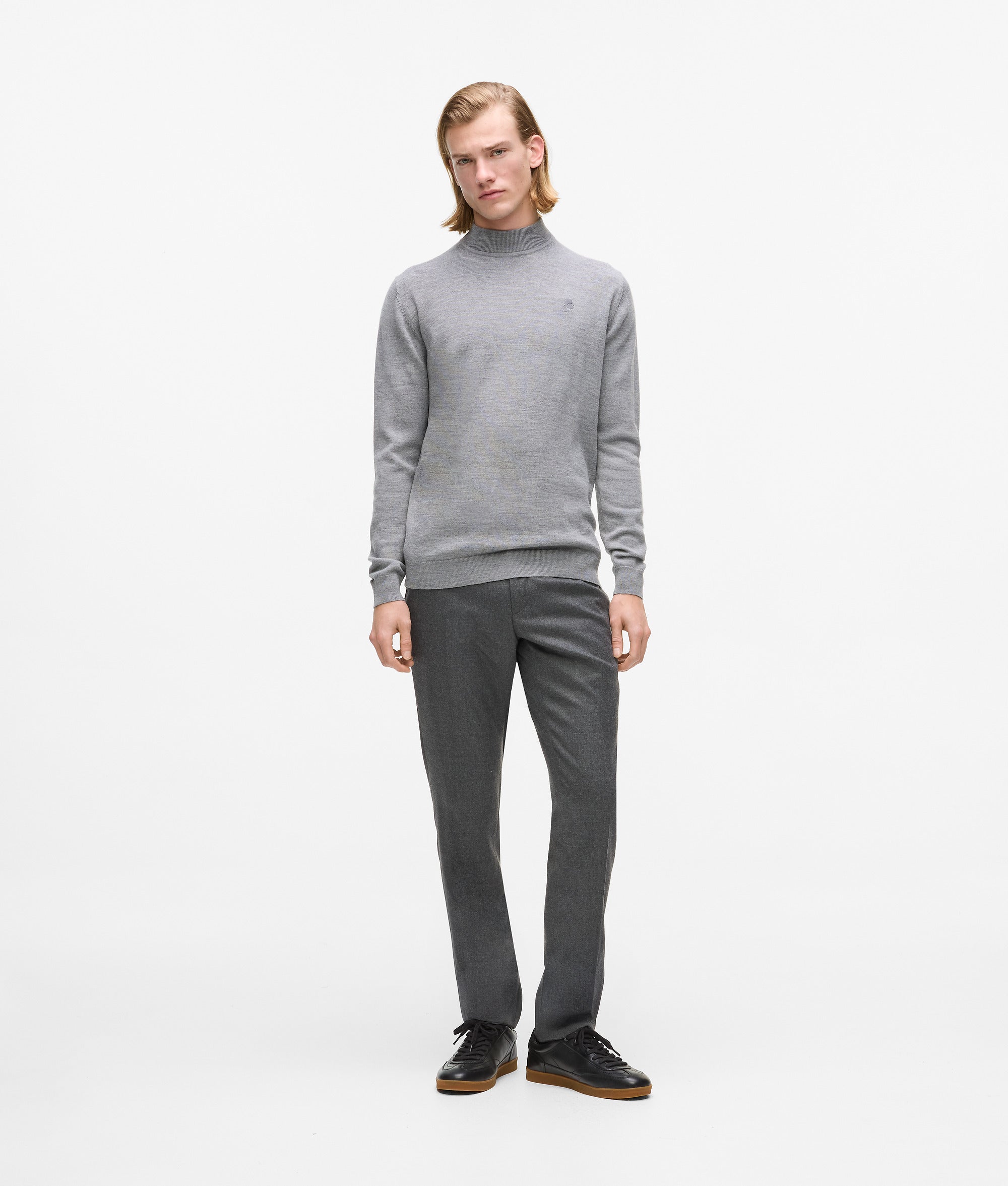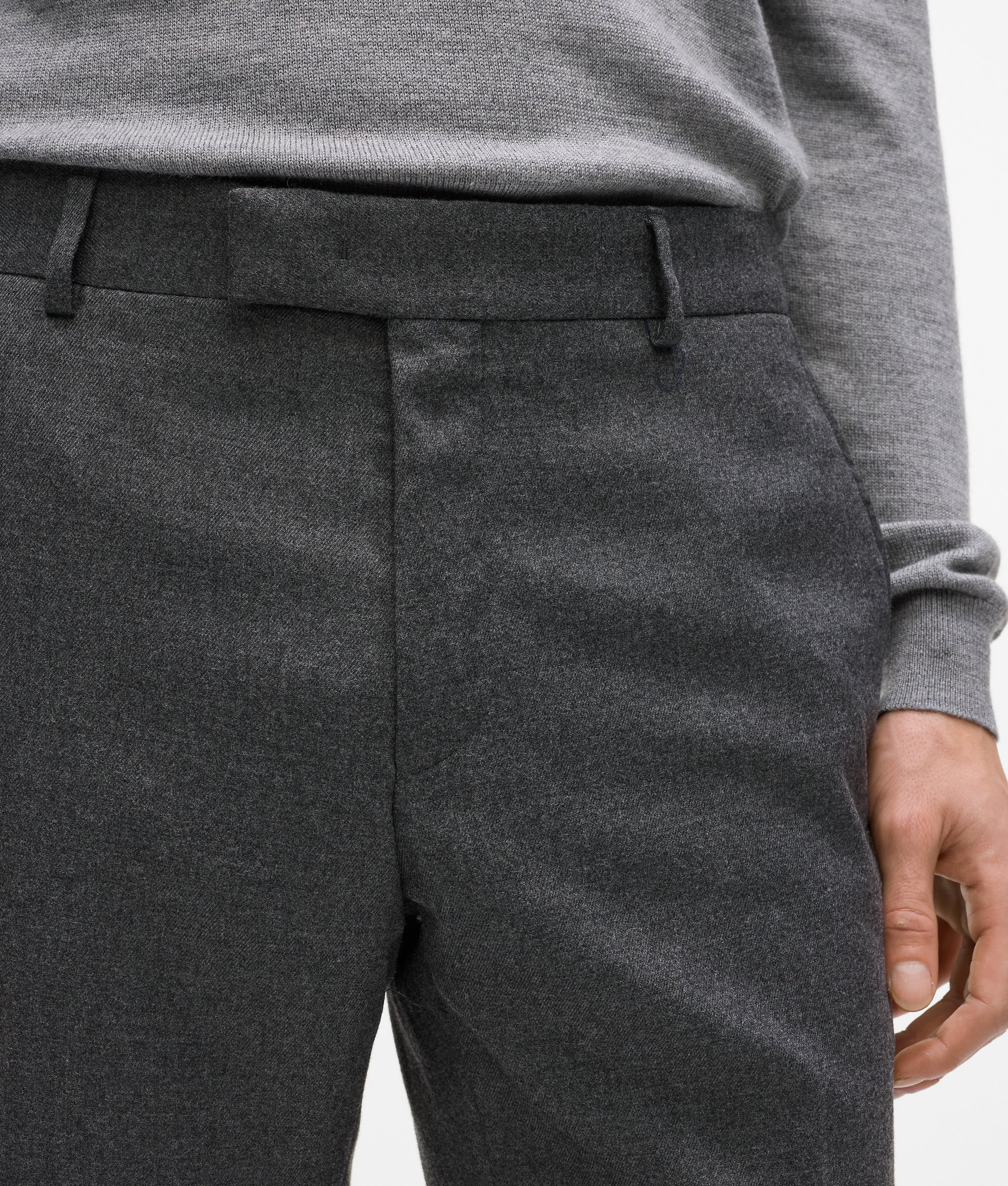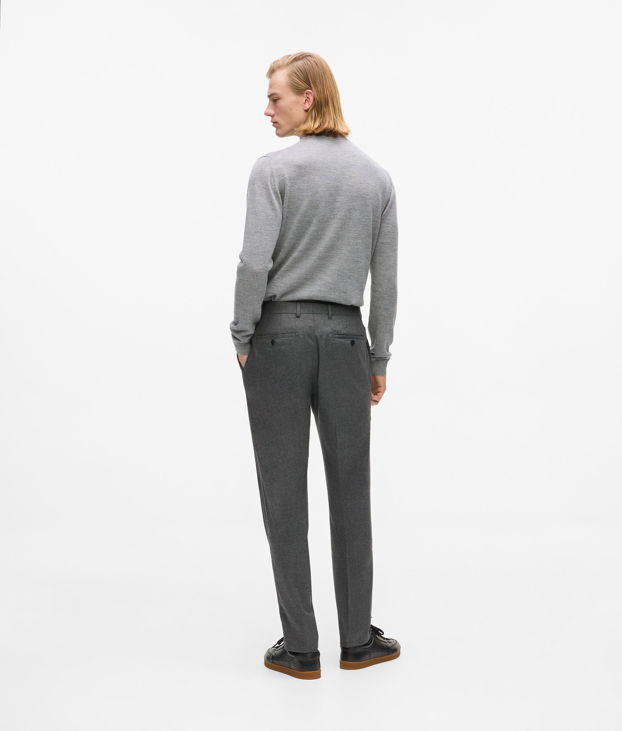 Een subtiele barrel-leg en dubbele plooien aan de voorkant geven vorm en karakter aan deze tijdloze broek. Glanzende biezen langs de pijpen tillen de verfijnde stijl naar een hoger niveau.
