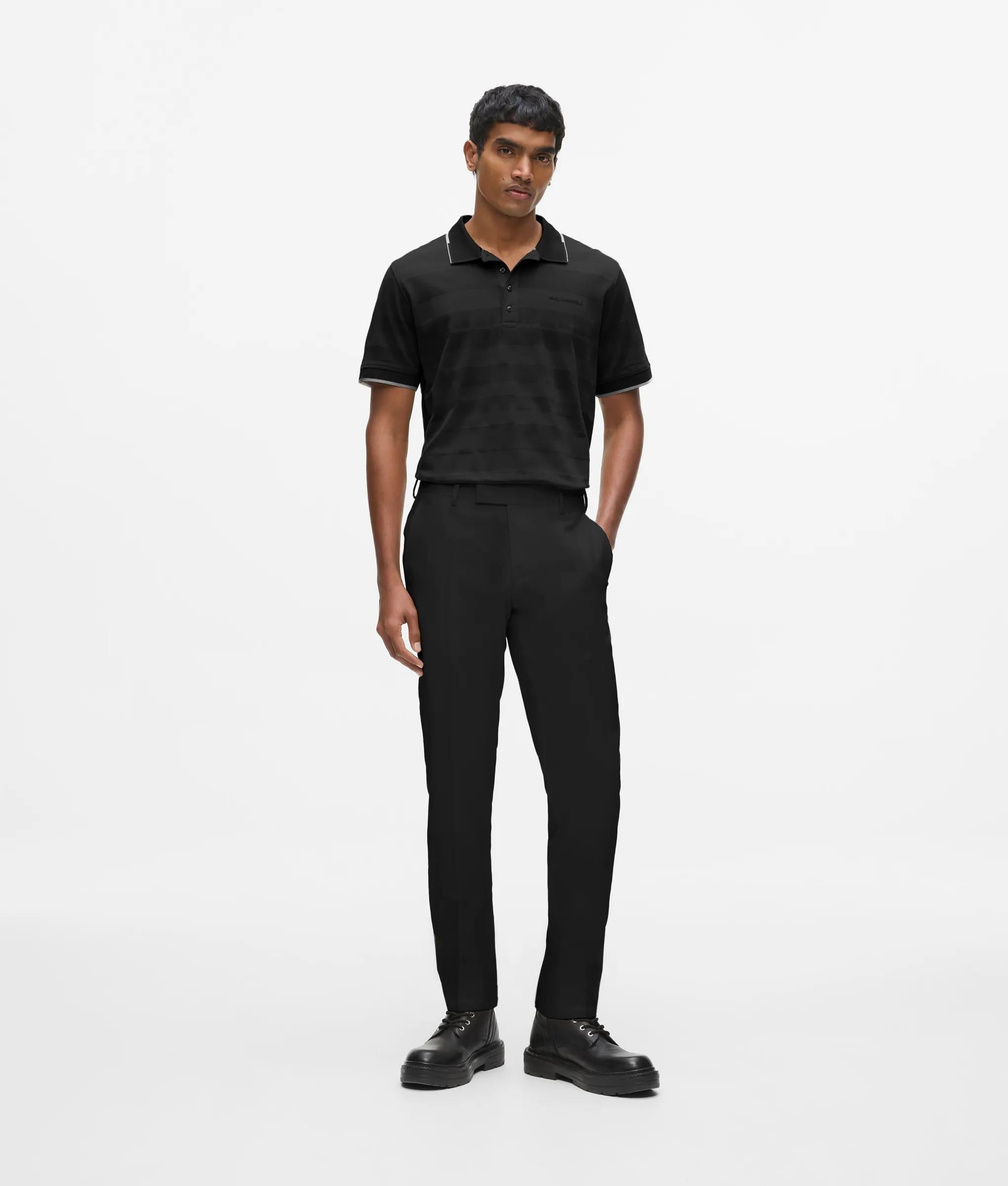 Deze polo met korte mouwen combineert monochrome strepen met strakke contrasterende biezen. De preppy vierknoopskraag geeft de polo een tijdloze uitstraling.