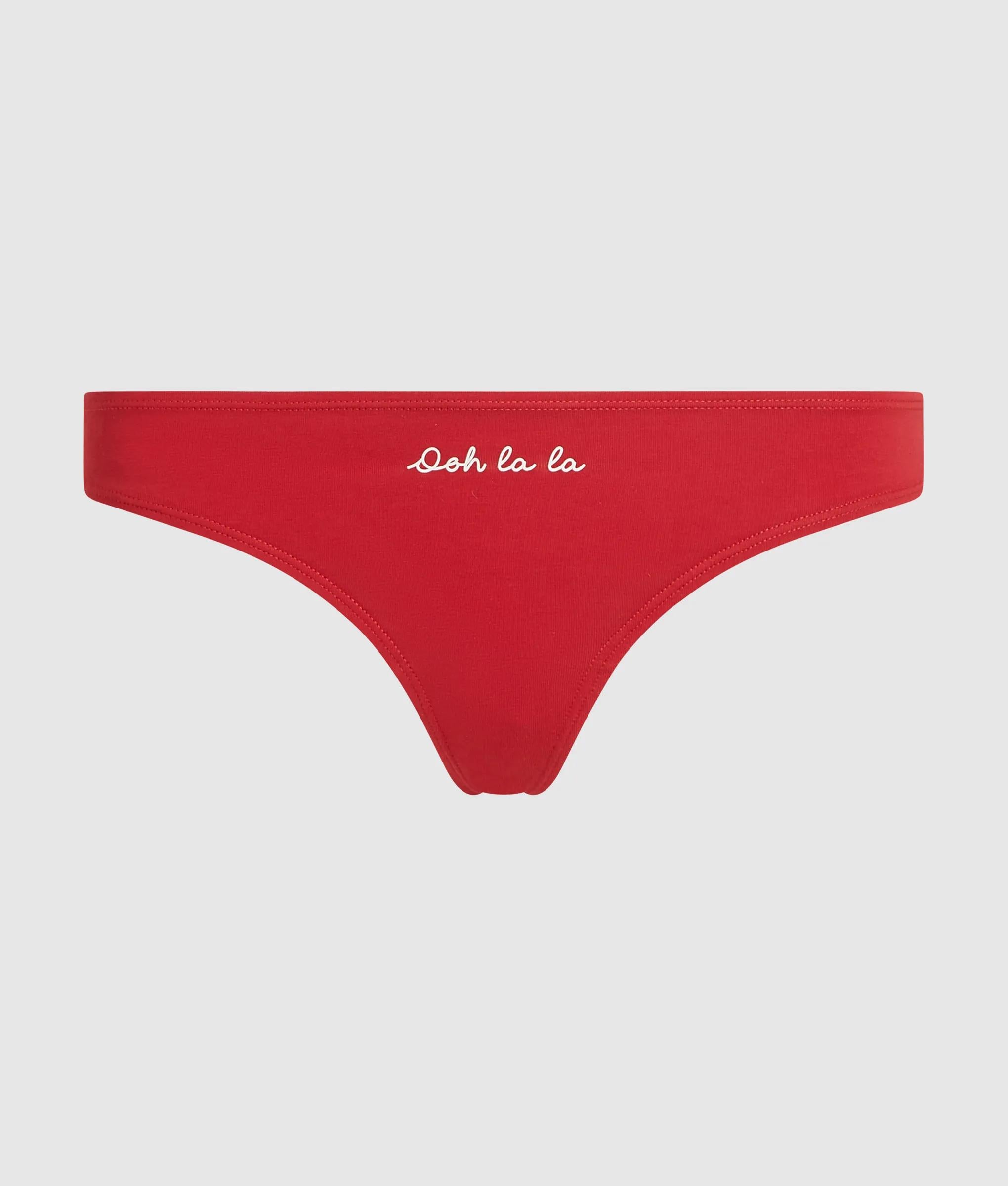 Te eleganckie figi wykonane z miękkiej bawełny organicznej zapewniają minimalne zakrycie, tworząc idealnie płynną sylwetkę. Każdy model zdobi inny napis wyrażający uczucie. J'adore.