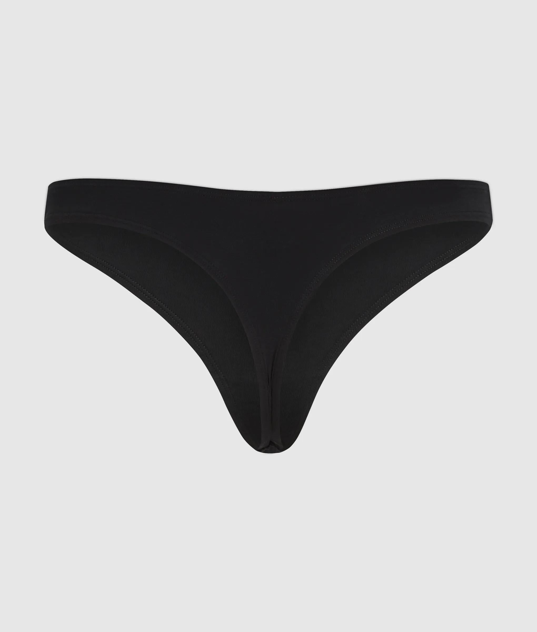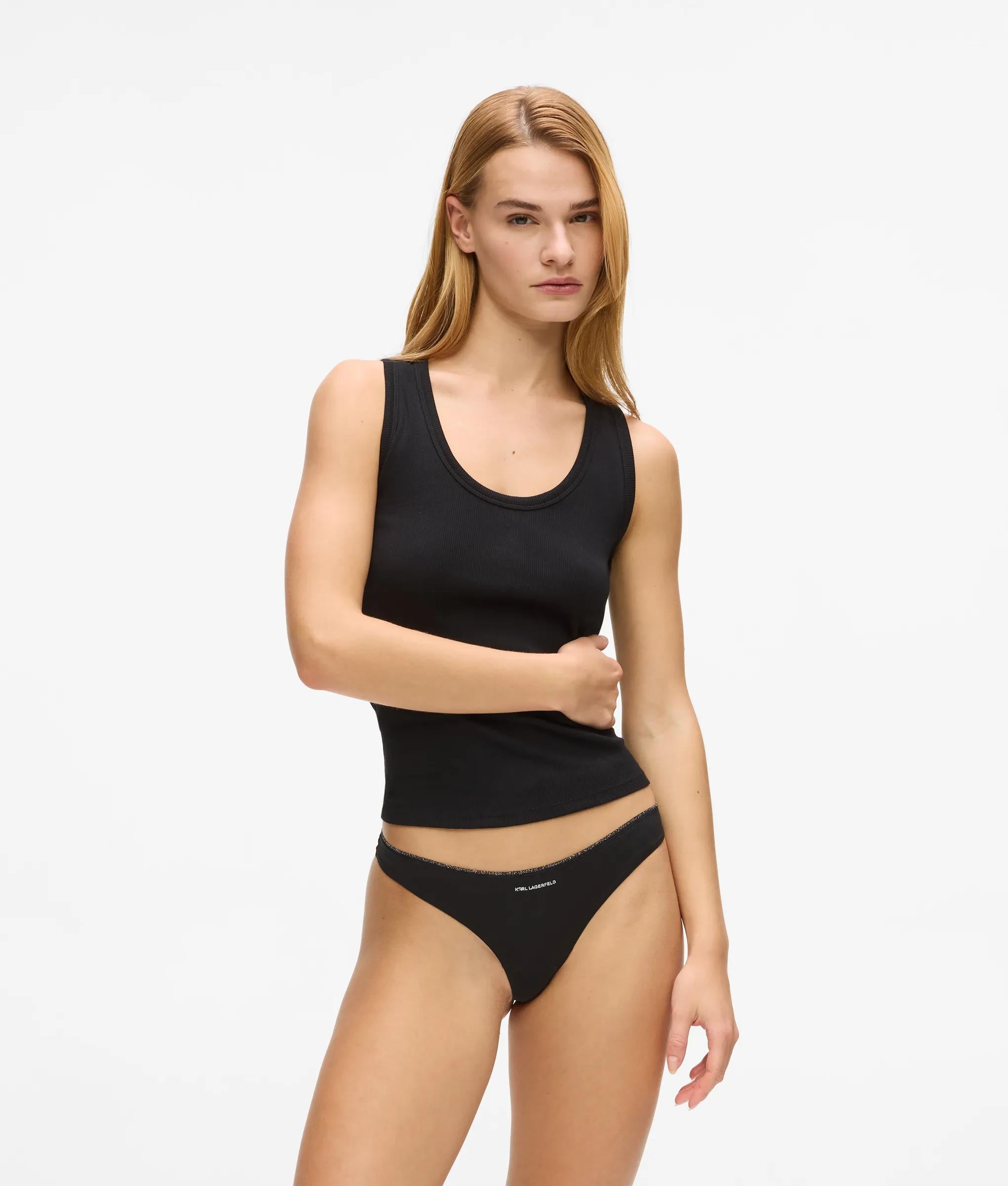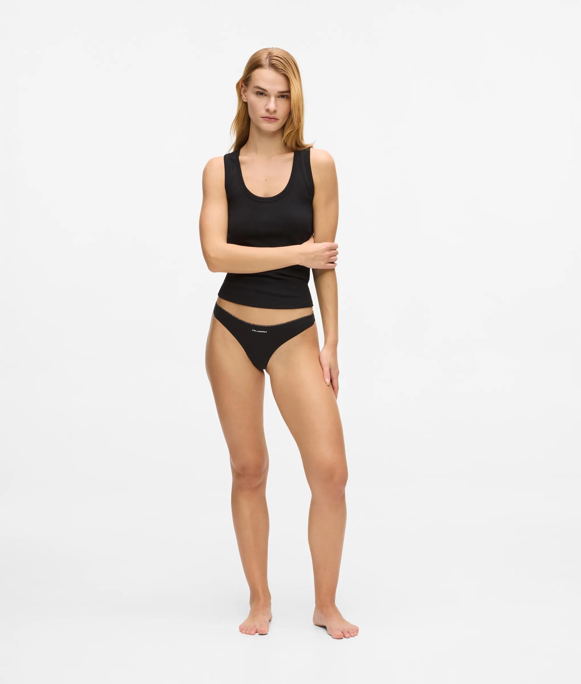 Jasnoniebieskie stringi z delikatnym połyskiem i grafiką Ikon nadają ton całości, zapewniając minimalne zakrycie i podkreślając smukłą, pewną siebie sylwetkę.
