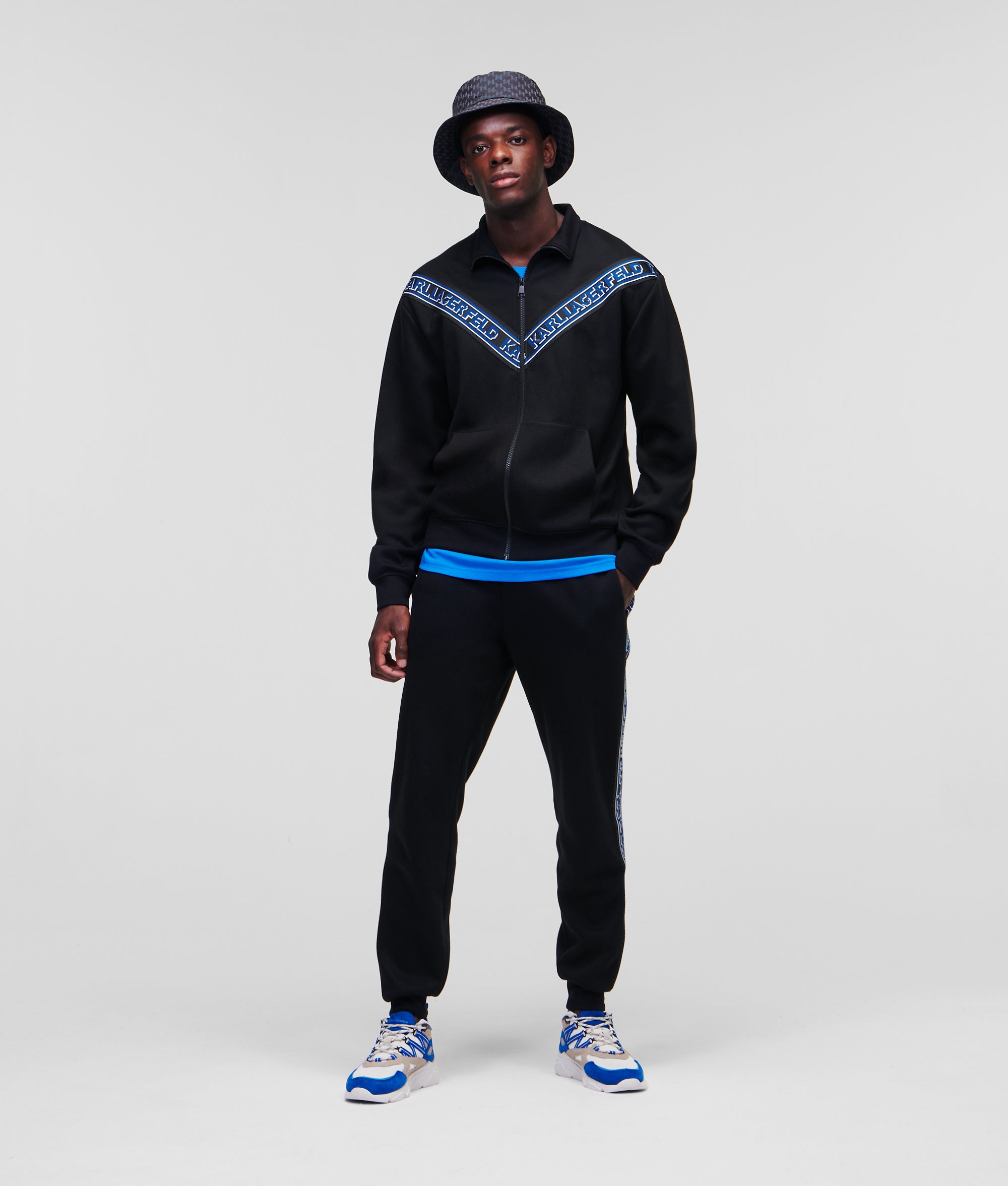This zip-up sweatshirt is made from ultra-soft viscose and features a bold chevron-shaped KARL logo tape design at the front. Wear yours with the matching sweatpants for a bold between-season coordinated look.