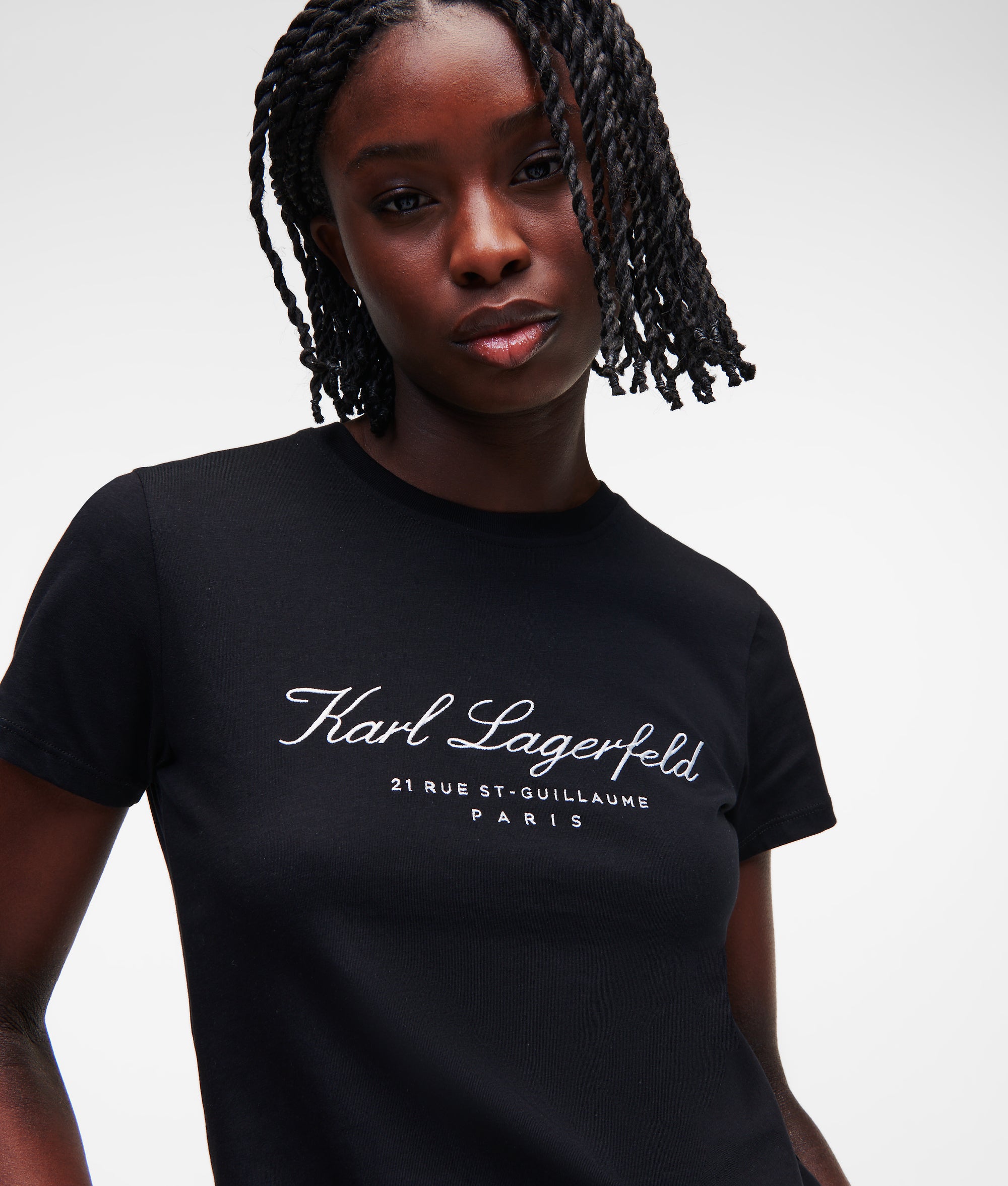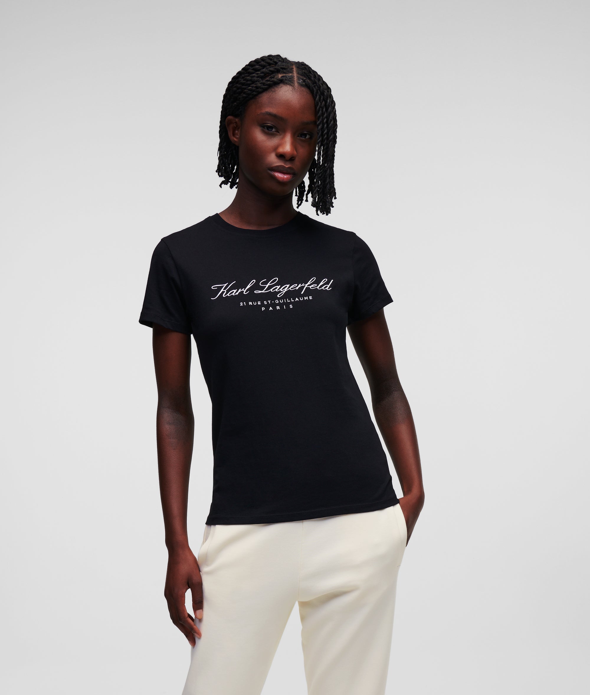 A casual classic transformed by sophisticated Hotel KARL artwork at the chest. This crew-neck T-shirt is cut from breathable organic cotton for comfortable at-home lounging.