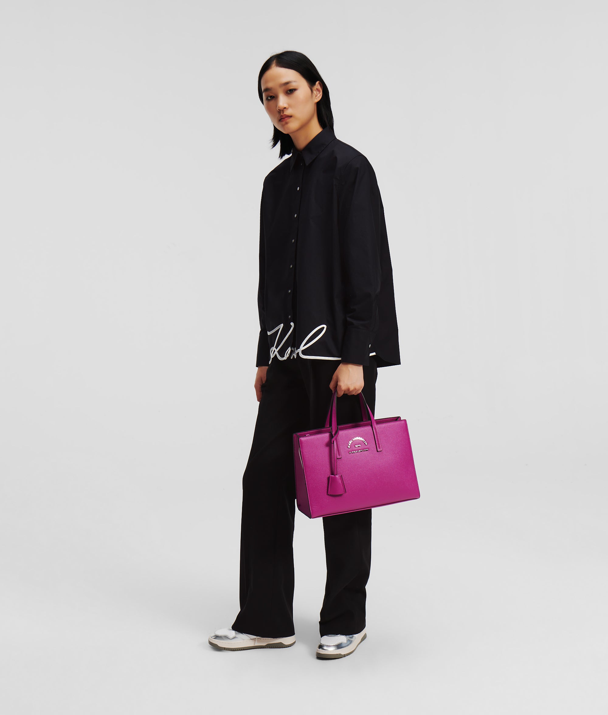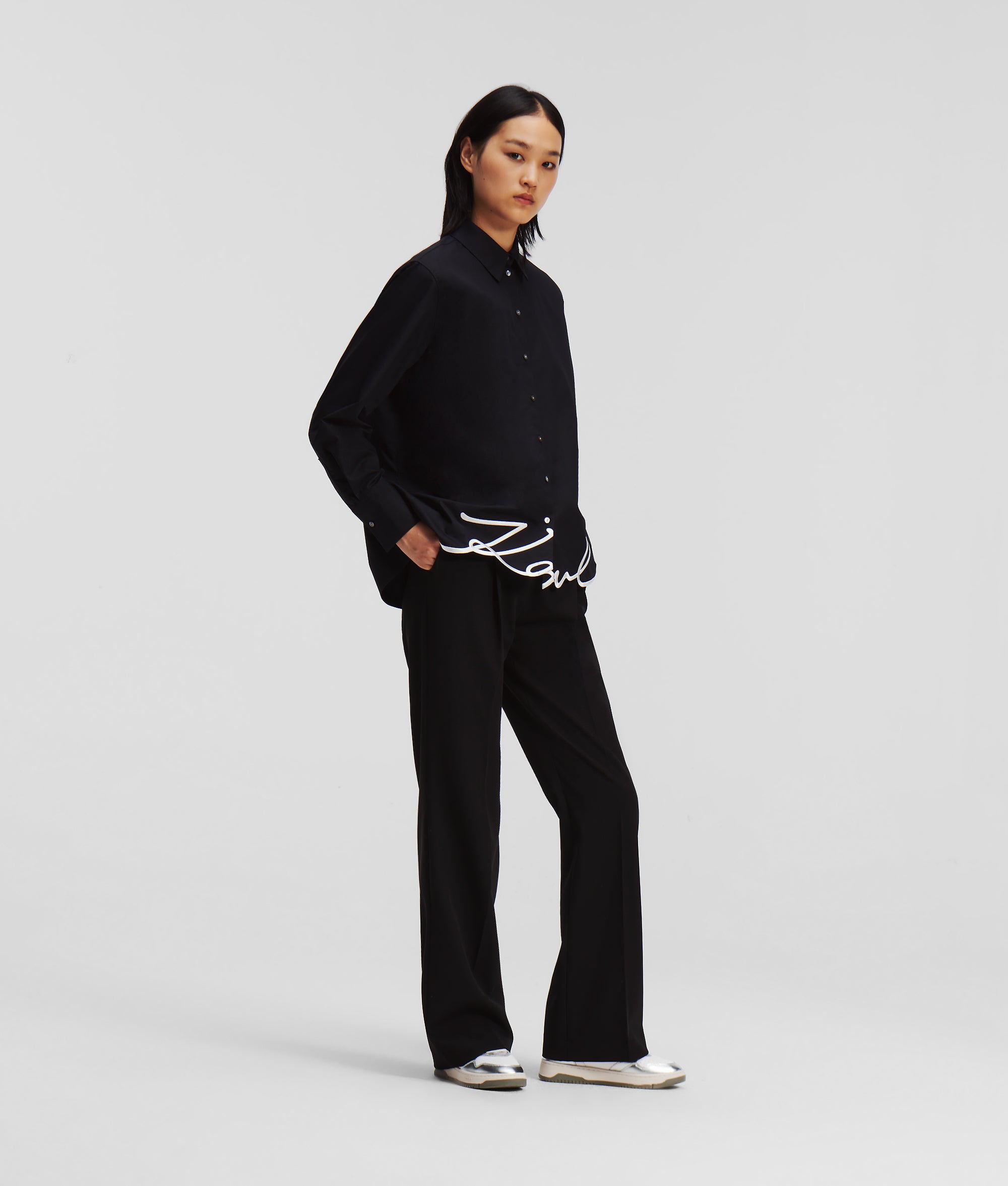 Striking KARL Signature embroidery gives a contemporary twist to this timeless shirt. Cut from organic cotton, the contemporary style is finished with branded buttons at the front closure and sleeve cuffs.