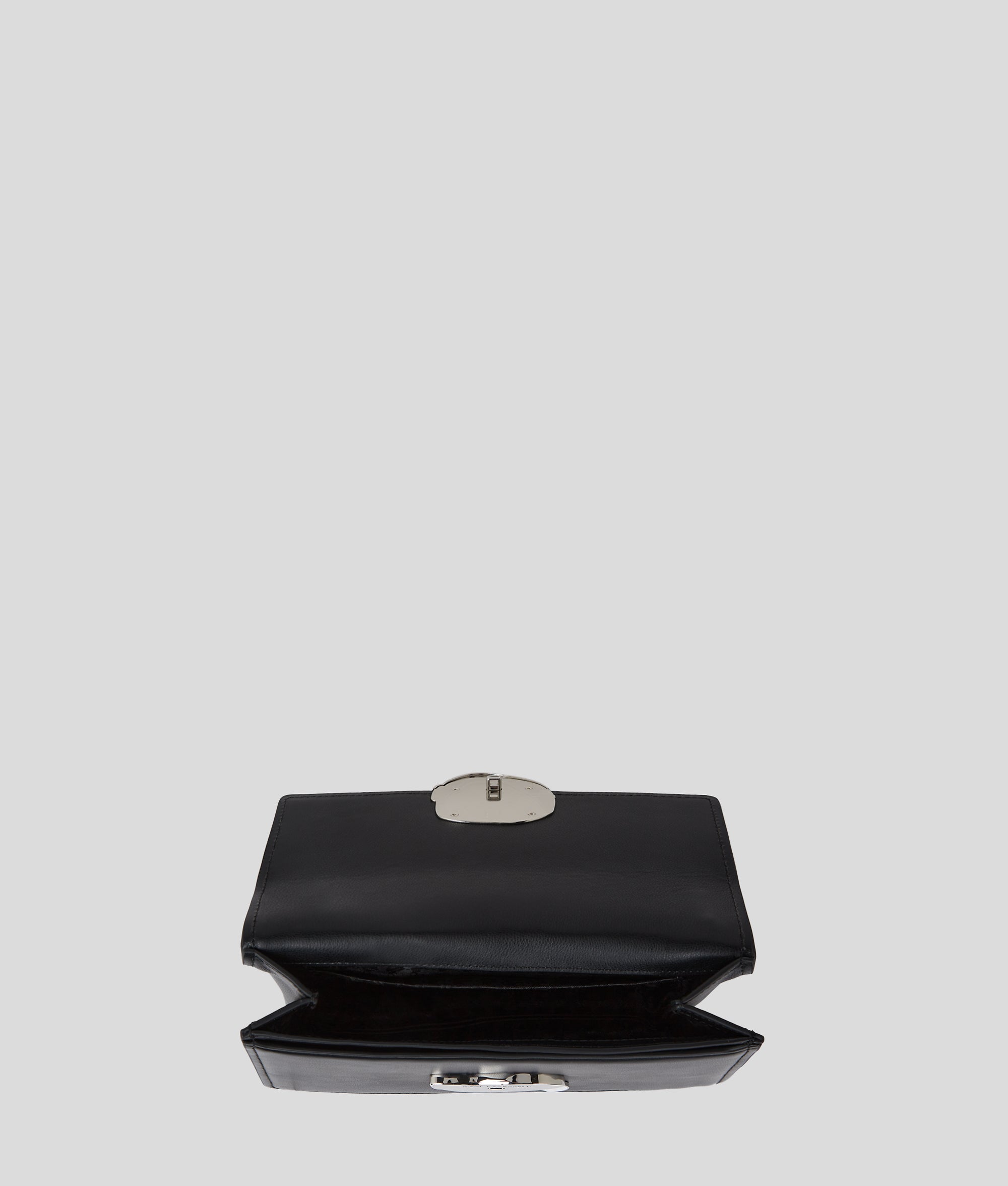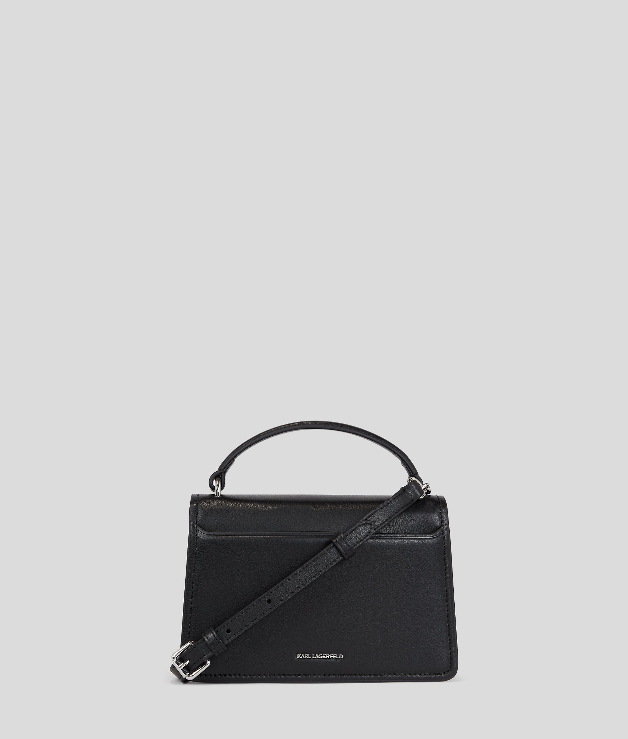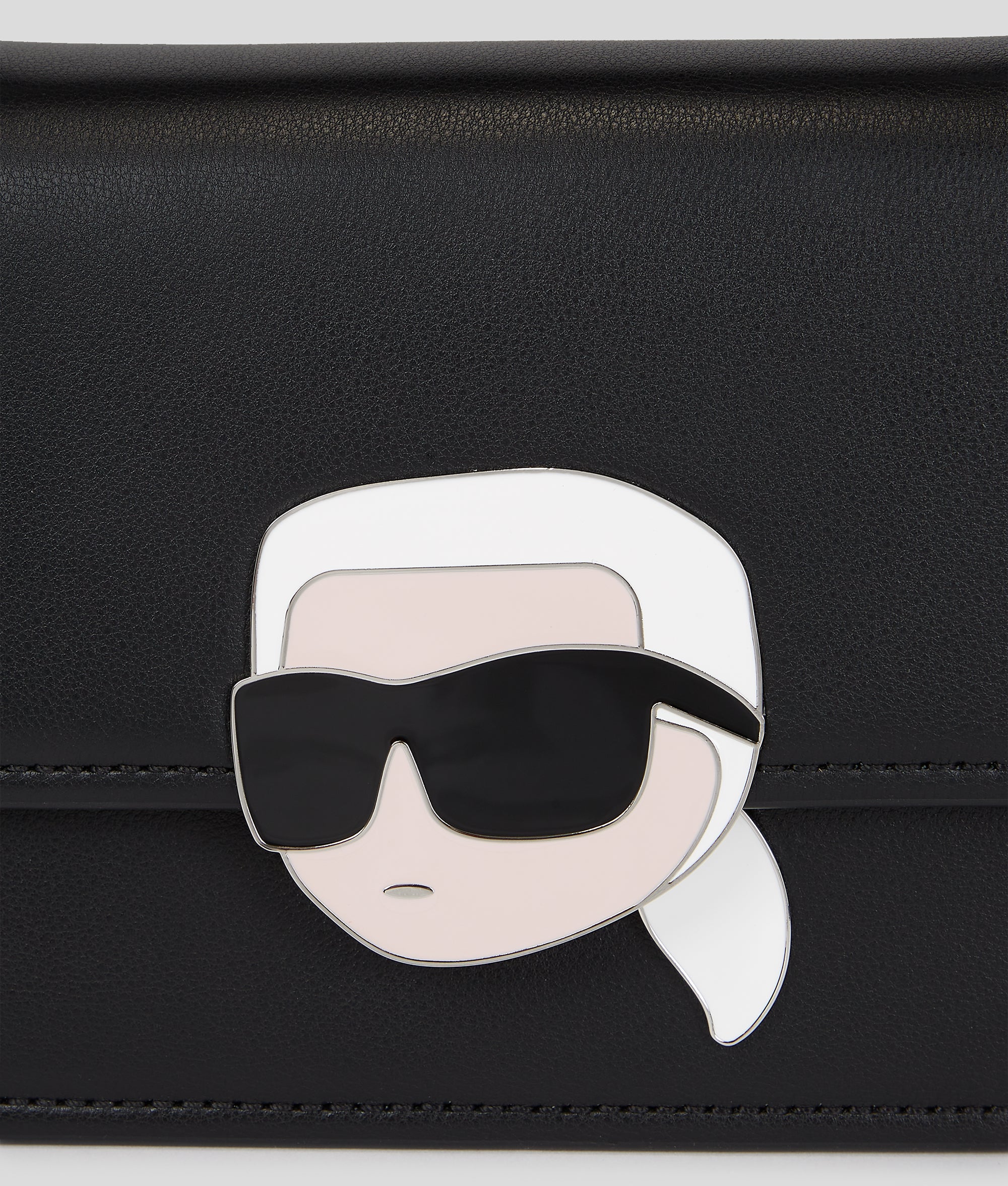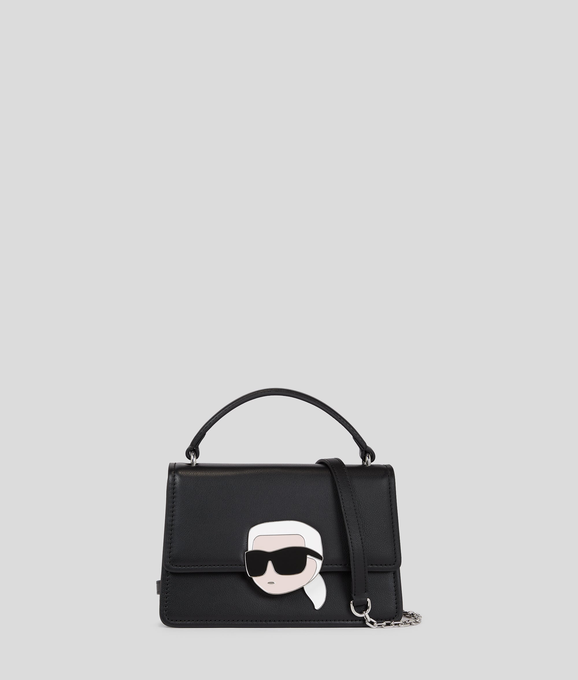 Crafted from luxurious smooth leather and featuring a unique IKON Karl lock closure, this crossbody bag perfectly transitions from day to night. A top handle and a detachable chain and leather strap complete the contemporary piece.