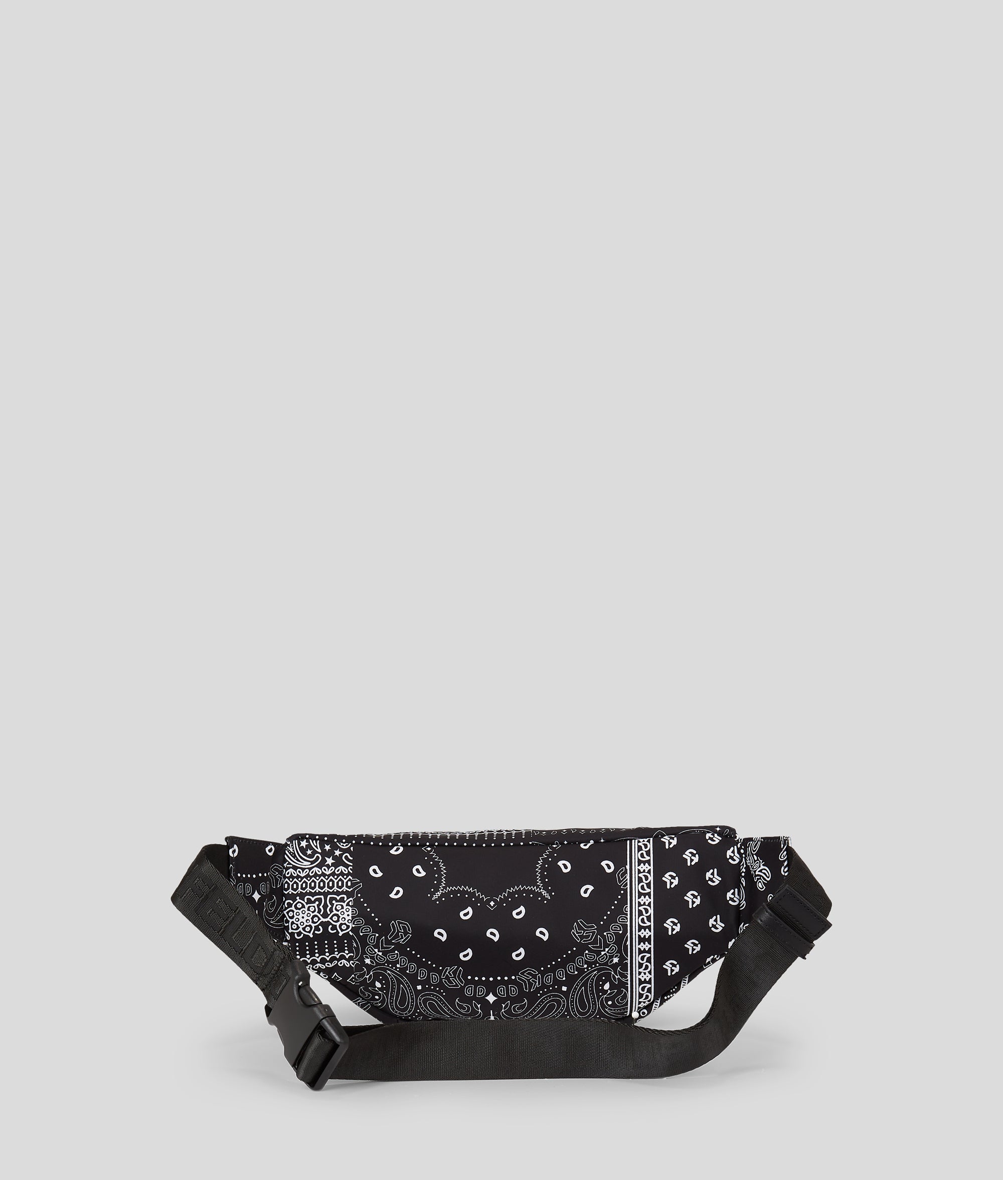 Go hands-free with this KARL LAGERFELD JEANS bum bag, showcasing a retro-inspired bandana print. Wear at the waist or sling across the chest by adjusting the webbing strap.