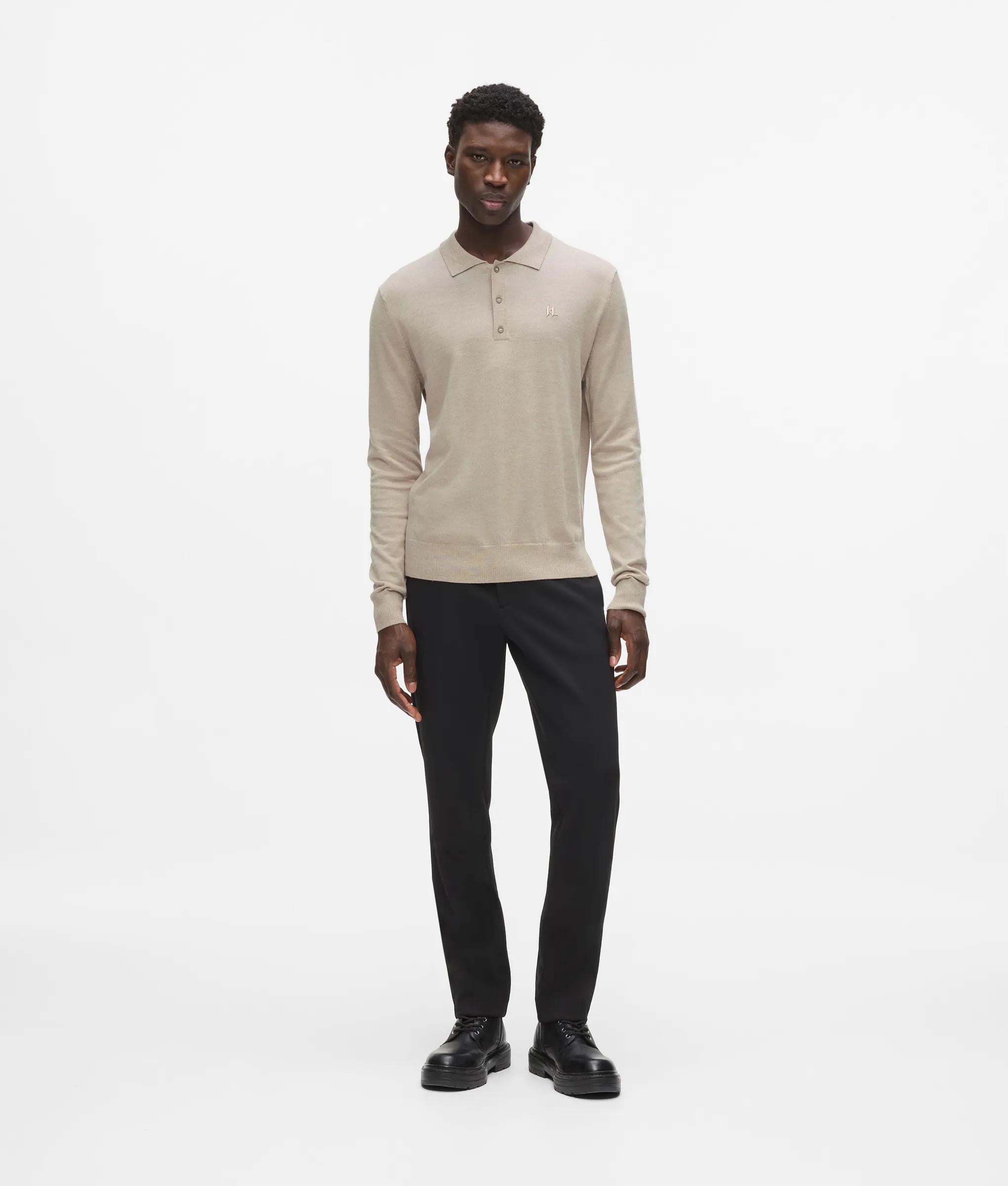 Merino wool long sleeved polo shirt