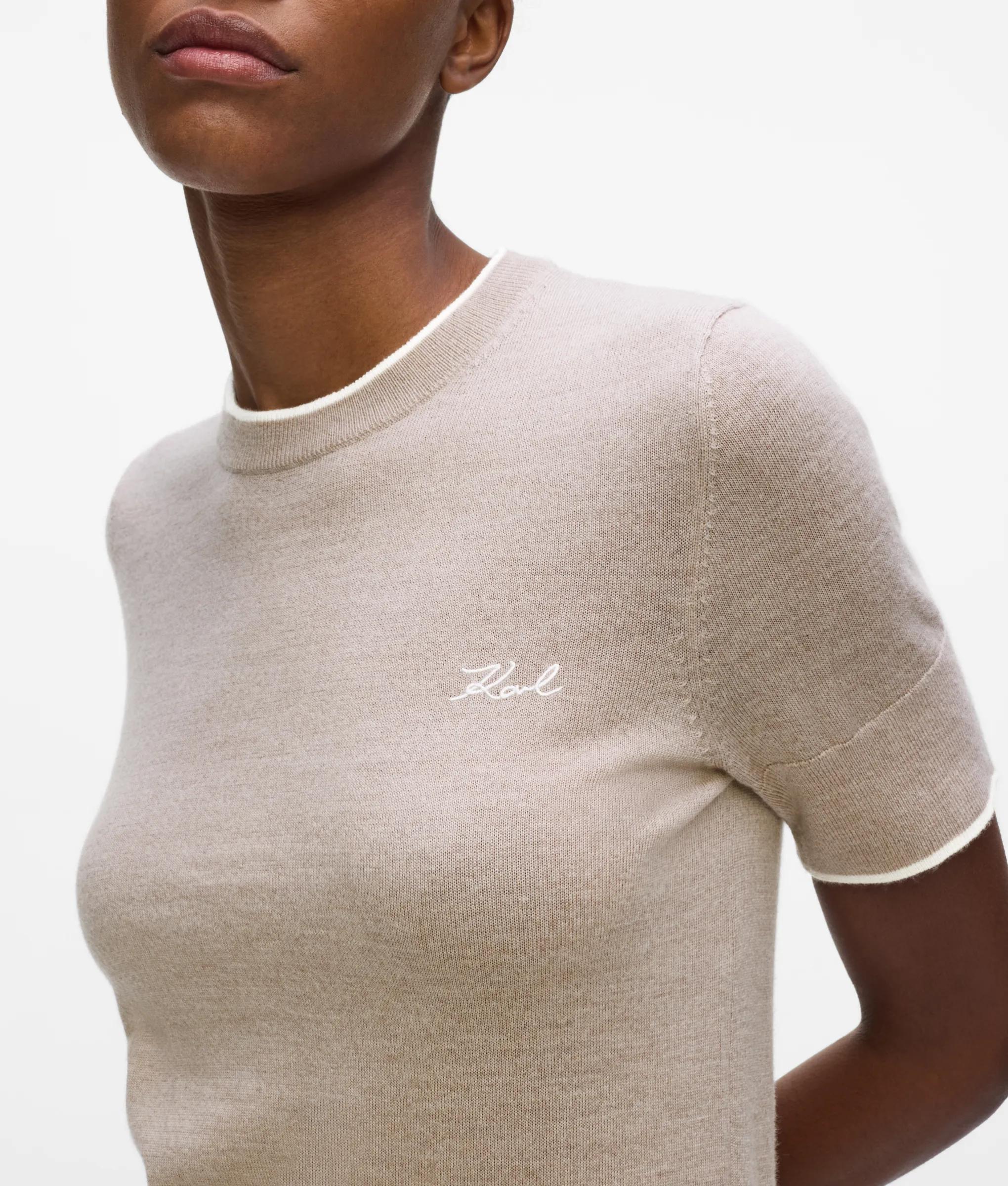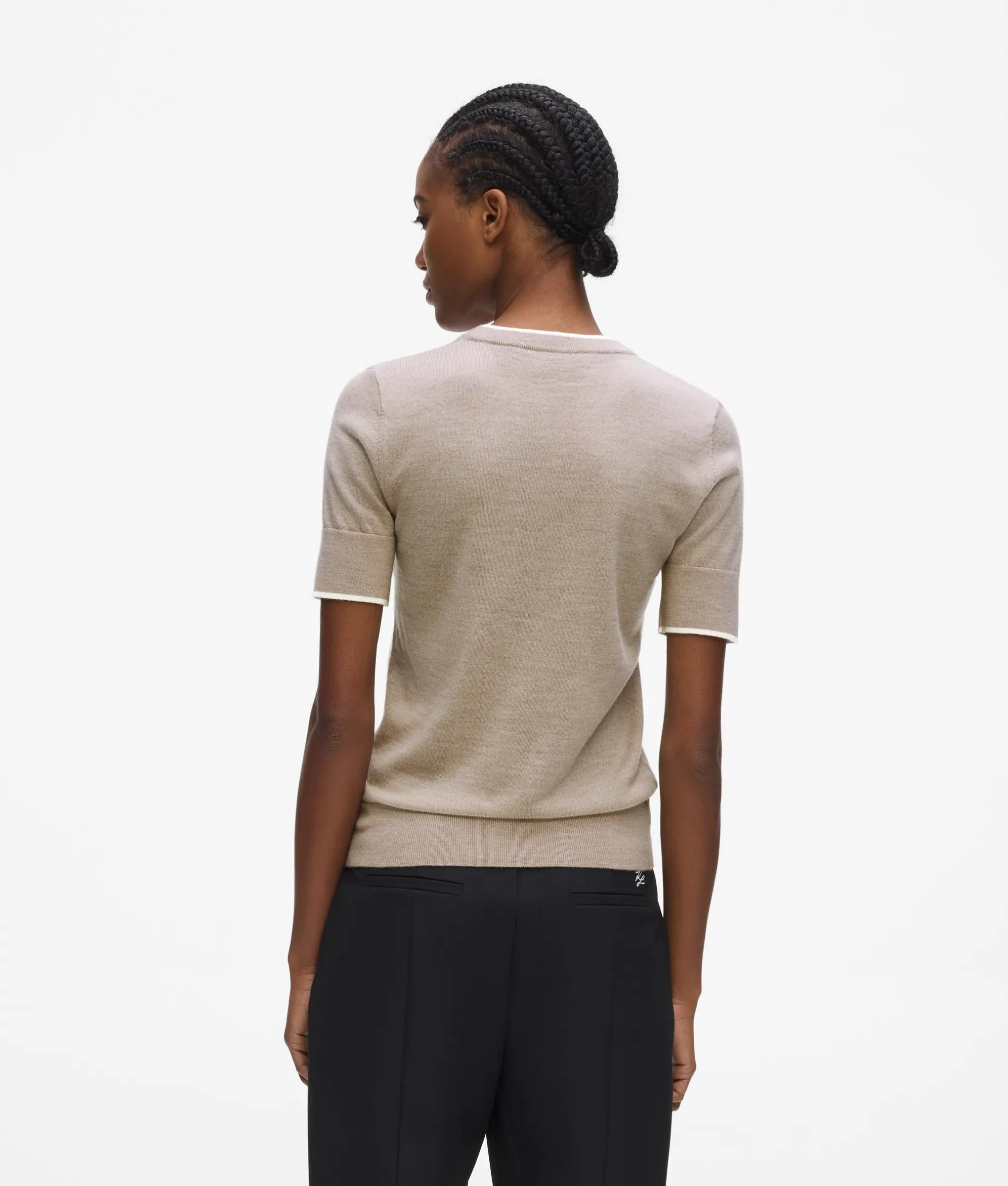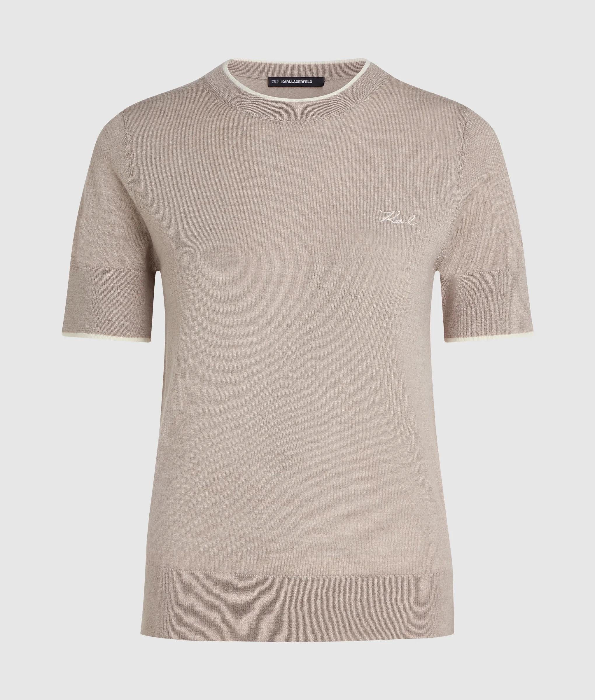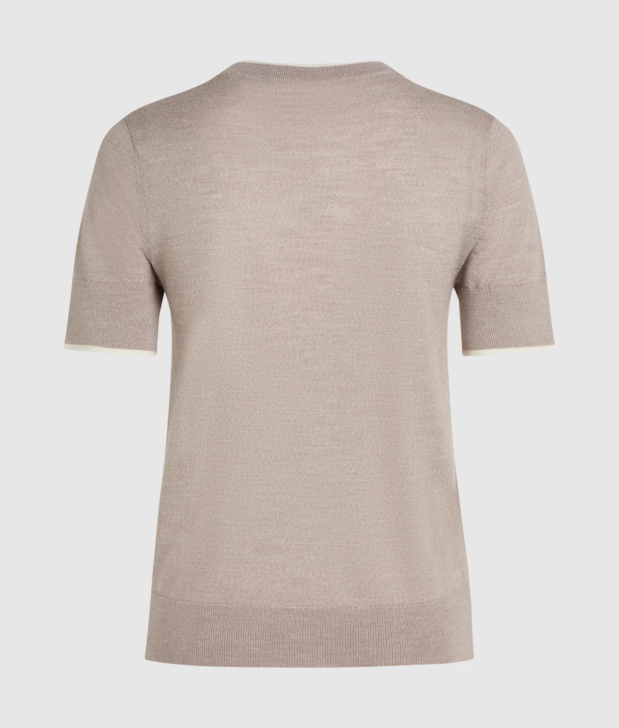 Infusing a wardrobe staple with understated elegance, this T-shirt is made from luxuriously soft merino wool and finished with contrasting piping at the neckline and cuffs.