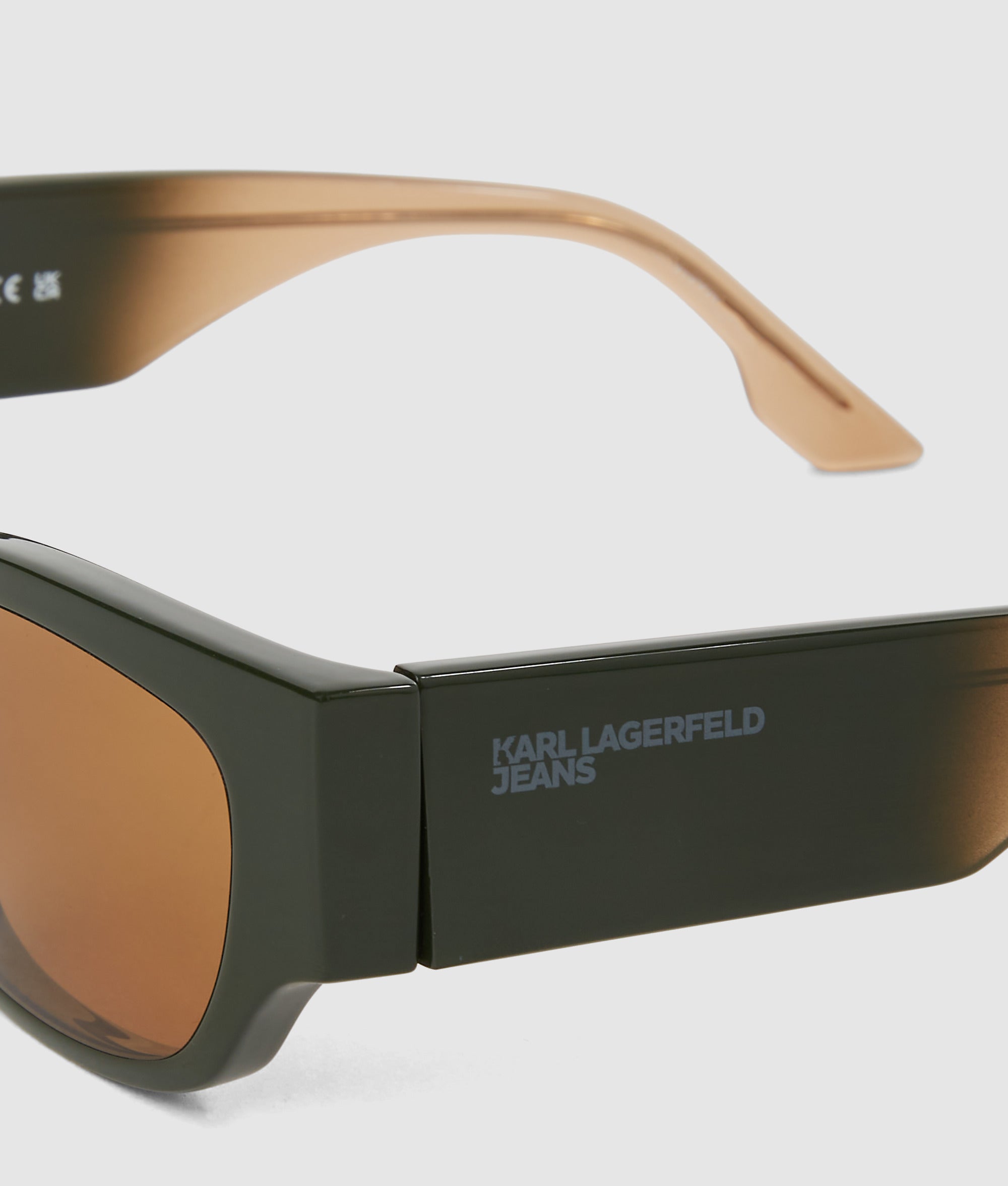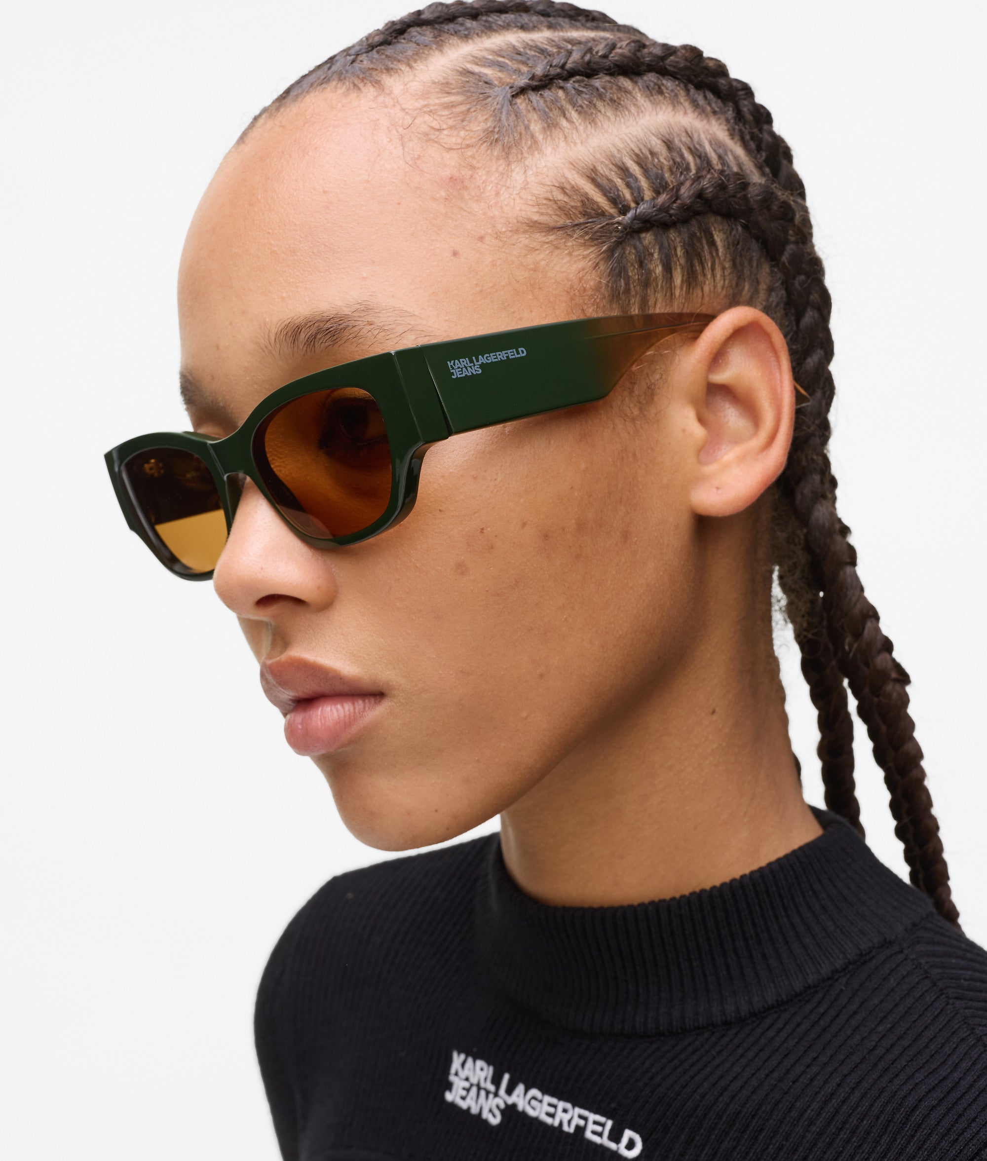 Bold shapes and comfort, these rectangular sunglasses dial up the attitude on any look. A molded nose stand allows easy wear, while dark lenses and deep arms with the KARL LAGERFELD JEANS logo add edge.