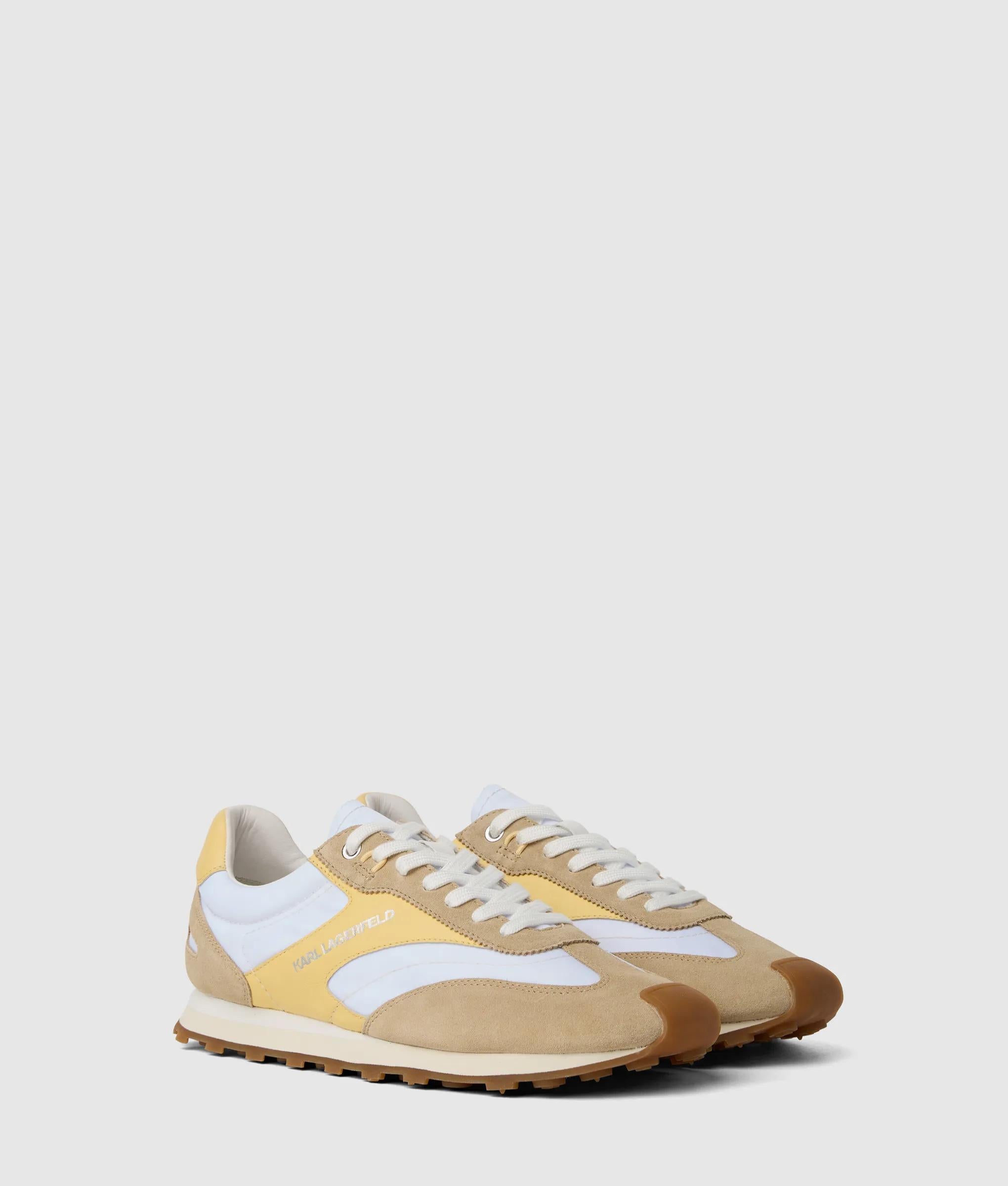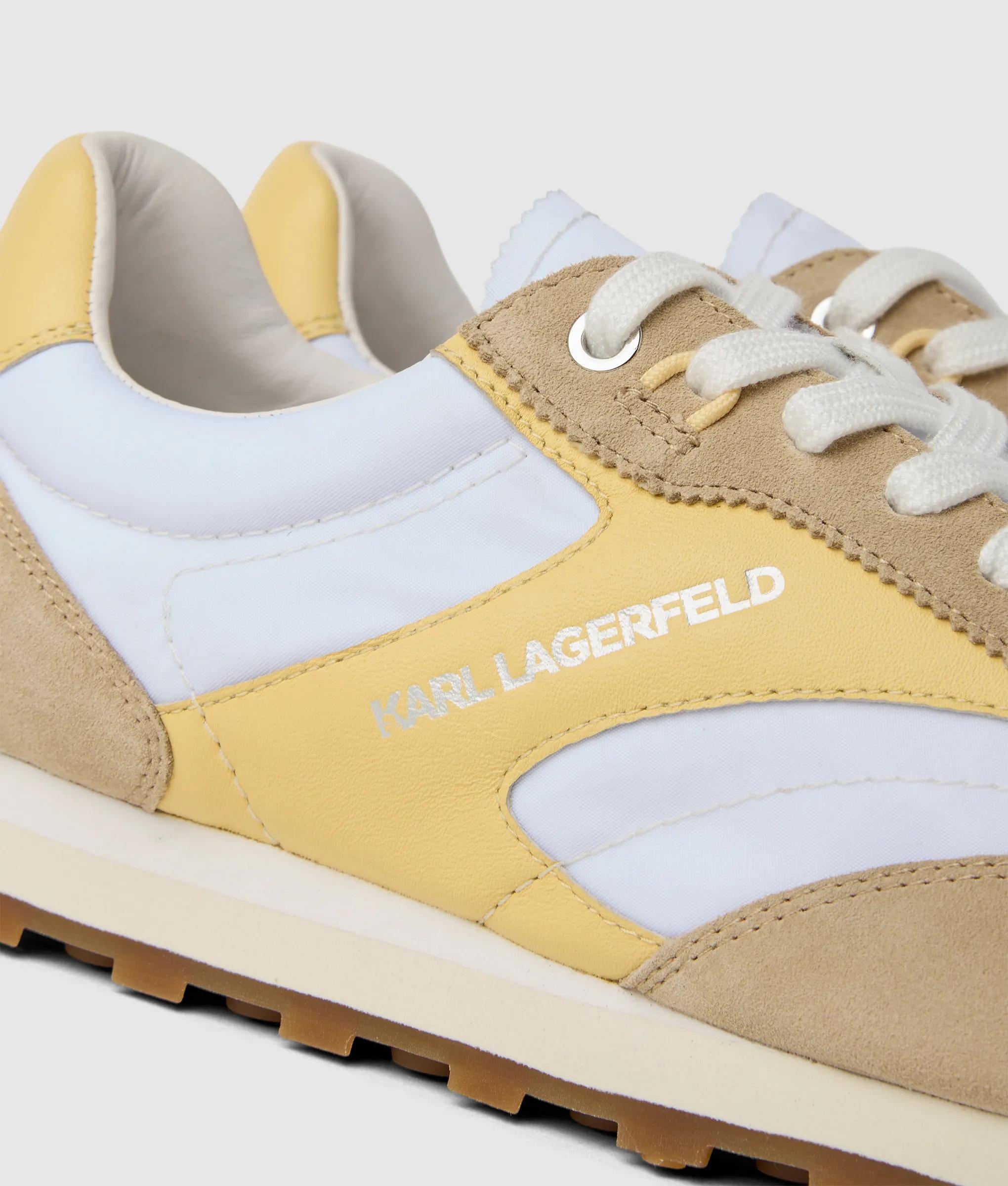 Bold with an urban flair, these sporty lace-up sneakers feature a vibrant, mixed-material design anchored by a metallic KARL LAGERFELD logo. Perfect for adding edge to casual-cool looks.